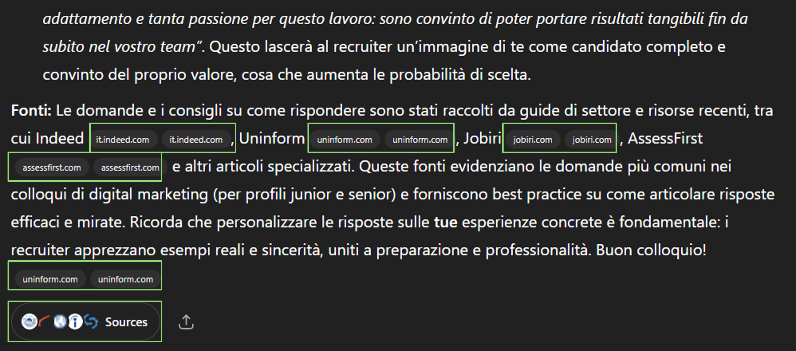 Oggi i candidati usano ChatGPT, Perplexity o Copilot per molte attività: cercare offerte, riscrivere il CV, capire contratti o normative. Questi strumenti non mostrano semplicemente link: rispondono direttamente alle domande e, quando lo ritengono utile, citano alcune fonti.